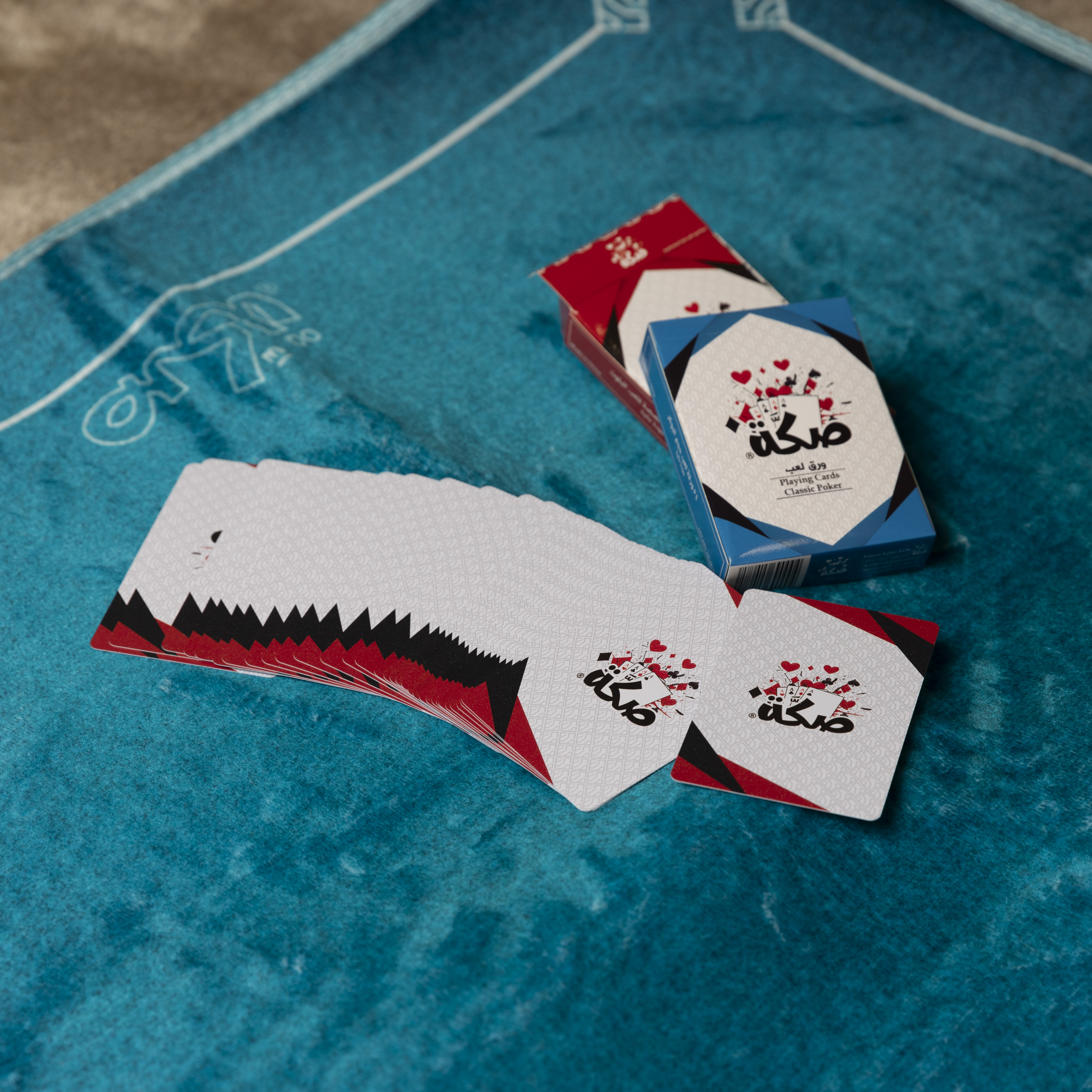 بساط صكة باللون الأزرق فرشة لعب عالية الجودة وخفيفة الوزن يأتي معها زوج من اللعب الملون ، ورق أحمر وأزرق يتميز بساط صكة بسهولة استخدامه وحمله كما انه يتميز بمتانه ويتمتع بسعر مناسب